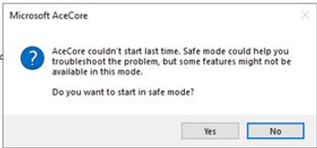Sometimes you wonder about Microsoft and their wisdom on older applications that still work. Due to a recent Office Update, applications that use Microsoft Access as a backend database received the message “Acecore couldn’t start last time”.